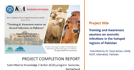 Awareness sessions and Trainings on zoonotic infections Funded by Swissnex Knowledge to Action (K2A) program, Switzerland, Funding 5000 USD